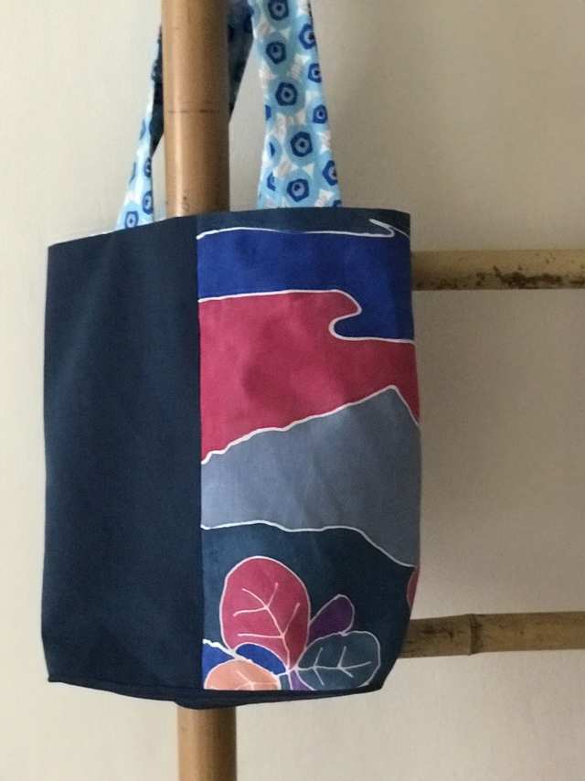 The silk is hand-painted and contrasted with plain fabric to enhance the silk.